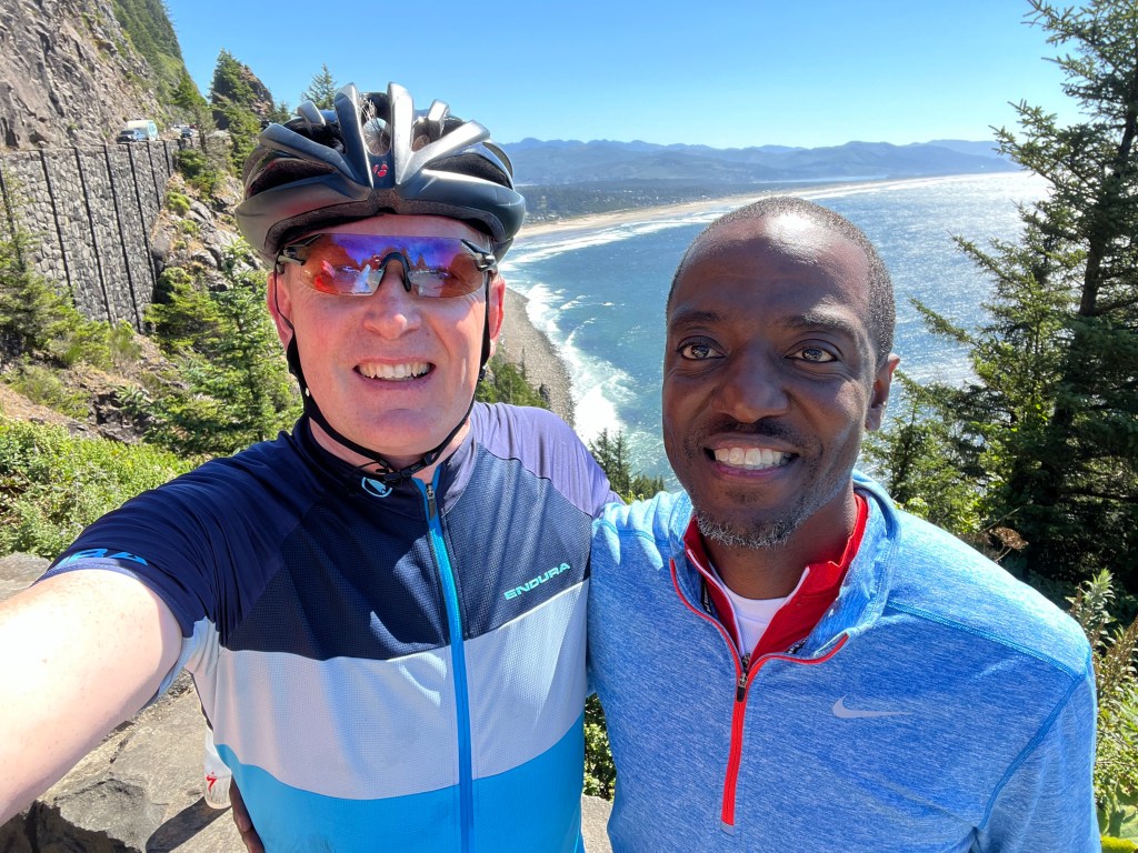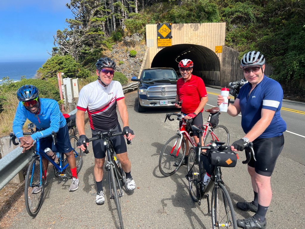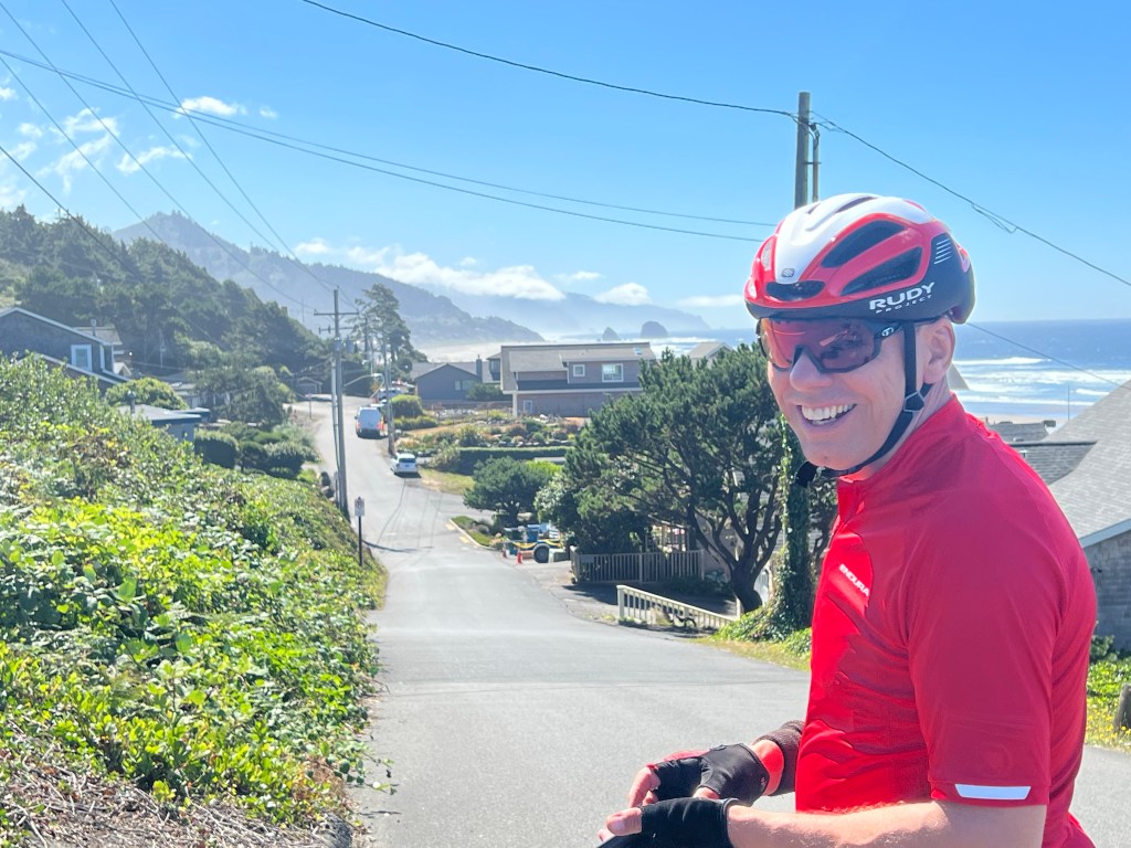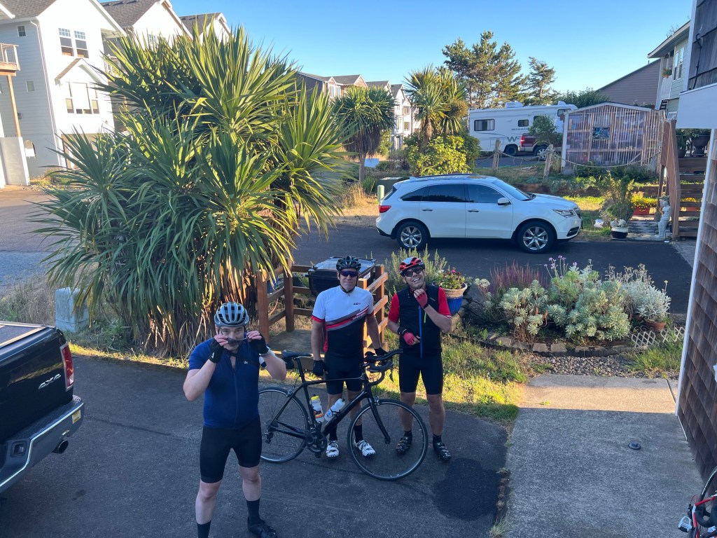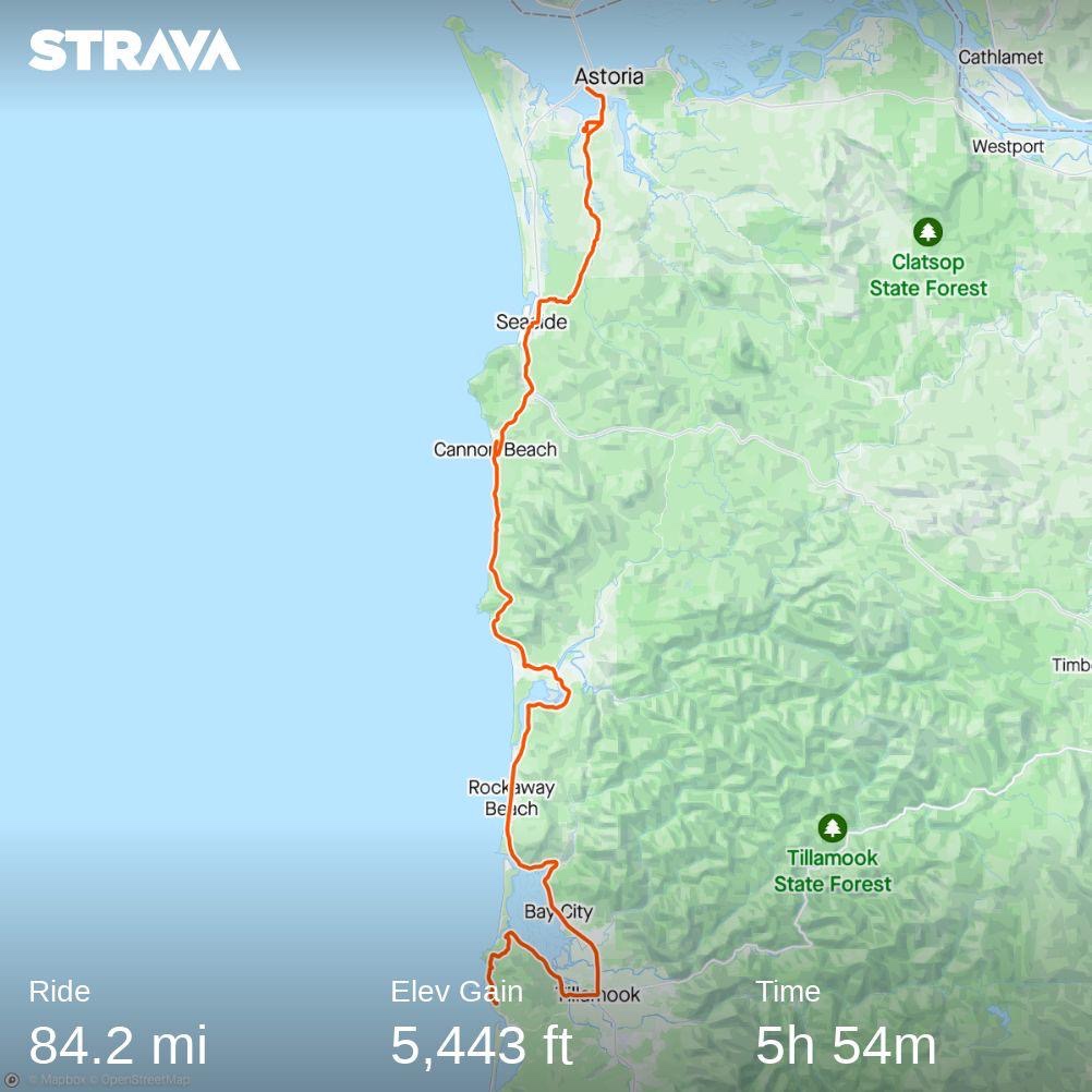 Today was Labor Day and it was stunning. Classic Oregon coast morning started out cool and misty. Took the scenic Lewis and Clark road to Seaside where the first challenge came up with a broken gear cable. Sorted at an open bike shop in Seaside. Stopped off to see a friend of Susie’s in Cannon Beach before climbing over to Manzanita including taking on the Arch Cape tunnel and having fish tacos & fish and chips at a great place in Nehalem. Long flat with the wind behind us took us on to Rockaway Beach, Garibaldi and Tillamook where we hung a right out to Cape Meares. A brutal headwind ensued followed by a closed road adventure up through the forest including gravel sections and a couple of encounters in the darkness with a couple of forest spirits that helped us along the way. Came out in Oceanside where I promptly got a flat and changed the tube out to ride the last piece up to the house. Stunning Airbnb with a deck and sunset to boot. Ended up at 84 miles and 5,450 feet of climbing – quite a bit more than we were expecting – but worth every bit.